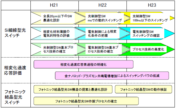 本研究の目的は、超大容量省電力光ノードを構築するために、「Siフォトニクス技術とGeSbTe等の相変化材料を組み合わせた新規の光スイッチを実現する。具体的には、スイッチング時間が100ns以下、全長が20ミクロン以下、かつ、自己保持機能を有する光スイッチ構成法を確立する。」ことである。フォトニックネットワークの光ノードにおいて、自己保持機能による省電力化、高速性によるバッファメモリ削減を可能とする。