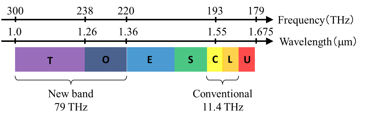 ⇒With the development of quantum dot laser in the 1µmm band, expectations has increased for the exploitation of T/O bands that offers 79 THz worth of bandwidth.